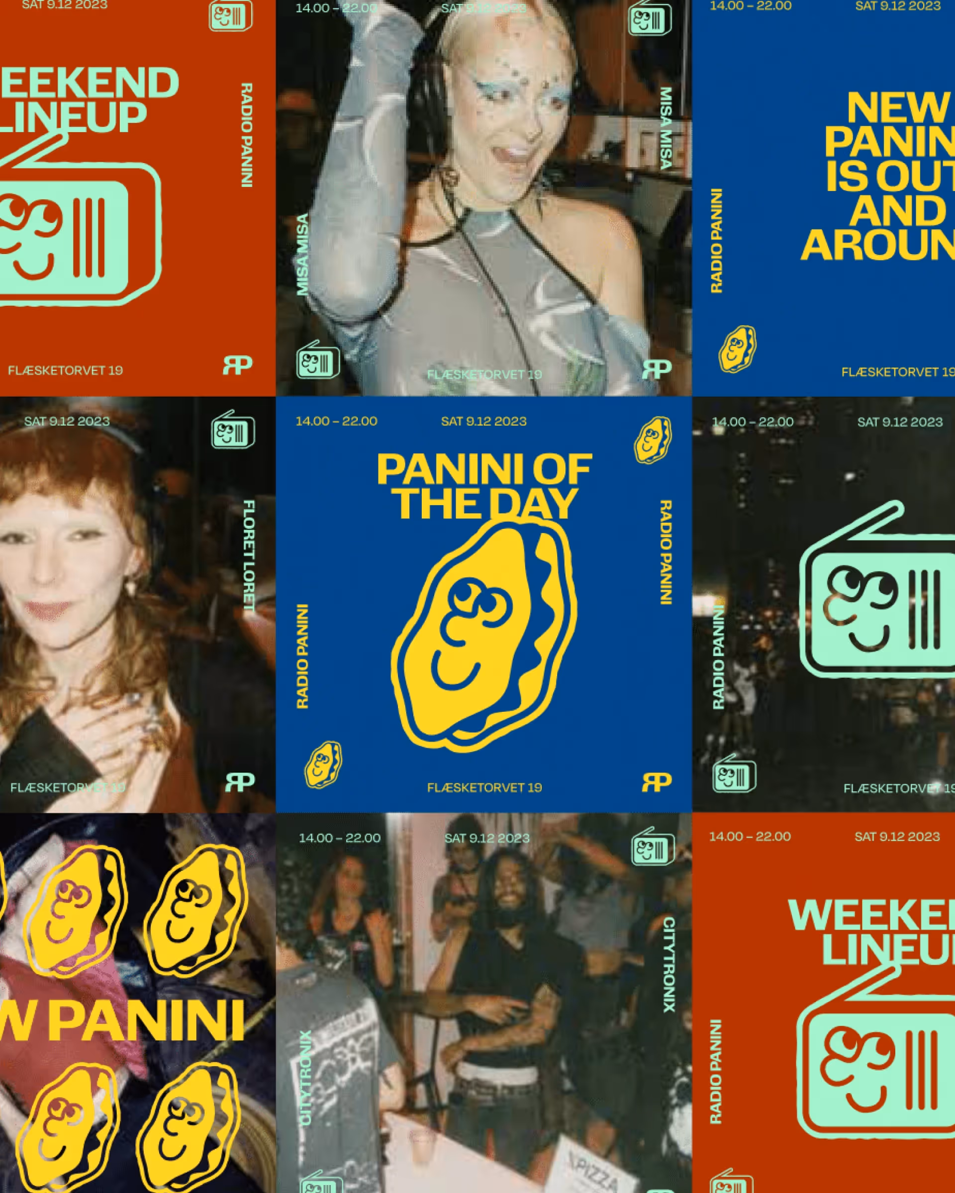The radio is Francesco, the panini is Simone. Together, they are the Italian duo on a disc mission to launch a community radio space for hangouts and eat-ins at the heart of Baggen in Copenhagen, Kødbyen.The brief was simple, yet complex – a visual identity which can (literally) wrap crusty cuisine as well as techno tunes.